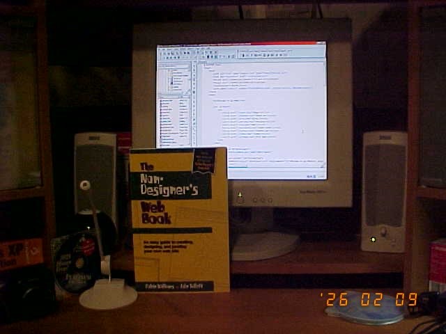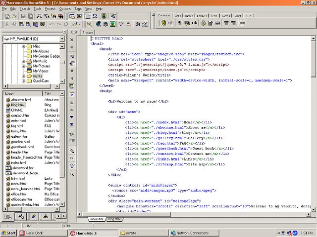 Configuring the internet connection on Windows XP has opened so many possibilities. Not only did I set up my development environment on here, but I was also able to figure out how to install an electronic mail client. After many attempts with different softwares and email addresses, I finally got it working with OE Classic and gmail. Some people wake up and read the paper, checking my electronic mail on my personal computer running Windows XP is how I start my day. For internet browsing I use a k-meleon browser with a custom homepage I created to mirror the America Online 56K dial-up connection screen. Every link on the homepage is fully functional, down to the search bar.