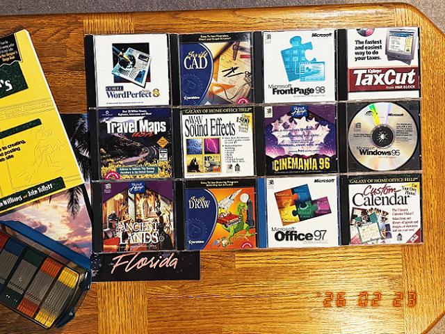 I have accumulated various types of software over the years. They each have a purpose that cannot be fulfilled by any other tool. FrontPage98 is used for web design, WordPerfect can open document extensions that Word 97 cannot. TaxCut by H&R Block also comes in handy this time of year, while Cinemania 96 offers countless movie reviews by renowned critic Roger Ebert.