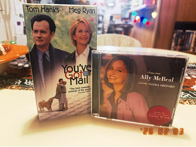 What do these two items have in common? For some odd reason, no matter which store I go to, I always find at least one copy of You've Got Mail on VHS and the CD soundtrack to Fox's hit TV show Ally McBeal. The truth is out there.